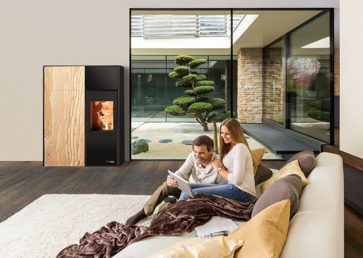 Estufa de pellet con imitación de llama de leña
